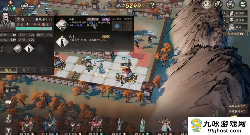 贾诩会在第五回合左右出现,这是最危险的时候。他一出来就会放范围技能,所以要把队伍分散开。夏侯惇可以转职成战车去吸引贾诩火力,战车形态的反击能力很强。夏侯渊继续远程输出,但要保持距离。典韦这时候应该已经撤到地图中间位置了,注意避开贾诩的技能范围。打败贾诩不是必须的,重点是让典韦安全到达撤离点。