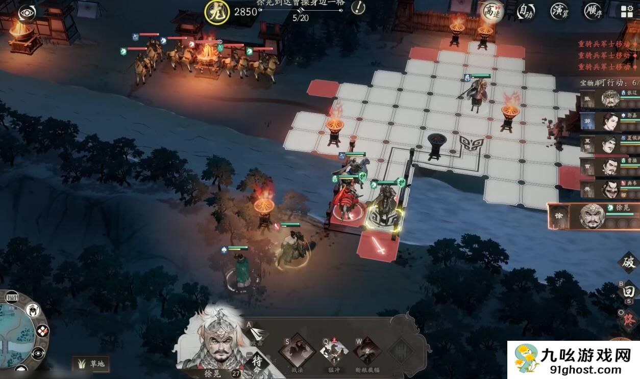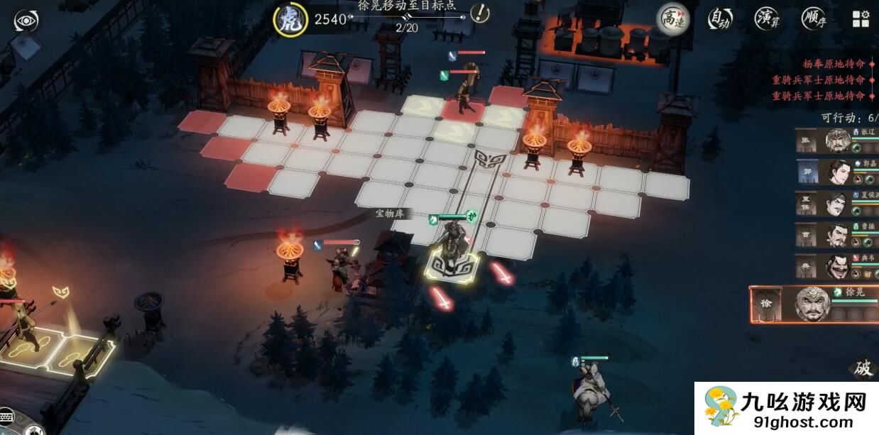 开局要优先解决视野问题。典韦的移动距离比其他武将多1格,应该让他走在最前面探路。徐晃要保持在队伍中间位置,距离典韦不超过3格,这样能确保触发后续事件。第一回合所有人先不要急着前进,在原地调整站位,让张辽和许褚分别保护左右两翼。记得把治疗武将安排在队伍正中间,避免被偷袭。第二回合开始后,典韦每移动2格就要停一下,等队友跟上再继续前进。