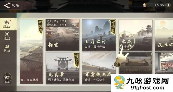 首先我们要打通第三章的剧情战役之后,且剧本的等级达到23+才能开启水战。楼船每艘消耗200木材建造,可搭载三名弓兵,射程达五格水域,适合远程压制,蒙冲舰消耗50硫磺,配备火油罐可点燃敌船。开局前优先在工坊升级“船体加固”科技(耗300铁锭),提升所有船只15%耐久。布阵时让楼船排成“人”字形(前排一艘,后排两艘),蒙冲舰从两侧绕行进攻。浅滩区域(地图显示为蓝色波纹)可减少移动消耗,利用它避开敌方弩炮射程。