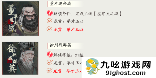这8个关卡在主线当中都是比较难的水平,玩家第一个需要面对的是董卓追击战,要想成功通过这个关卡,就需要对付董卓和手下的西凉铁骑,而西凉铁骑的难度都相当高,需要针对性的兵种才能成功攻略,比较推荐大家尝试的是铁甲骑兵,可以配合诸葛亮一起上阵使用。玩家要想解锁该关卡,需要先完成主线的虎牢关之战。