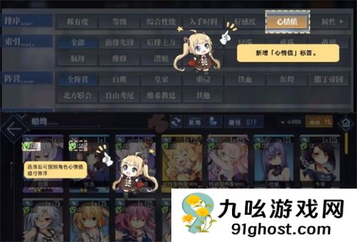 下次维护后,「船坞」的排序将新增「心情值」标签,选择后可按照角色心情值进行排序。