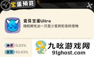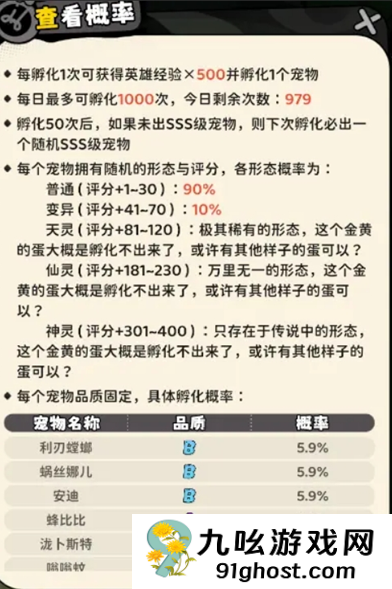 4、孵化机(抽卡)只能抽到普通和变异两种形态的宠物,前期可以适当抽取变异SSS宠物,资质最高。后期只需要用获取的免费抽卡券抽即可。