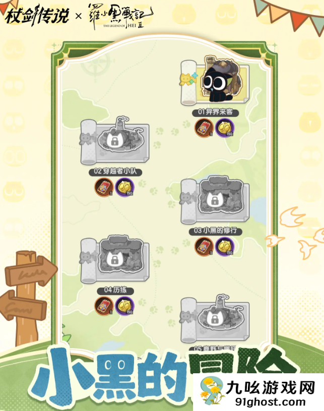 本次联动还特别推出原创剧情篇章——“小黑的冒险”,讲述小黑一行人意外穿越至坎斯汀大陆后展开的一系列奇遇故事。他们将如何适应这个陌生的世界?又会与原有角色产生怎样的互动?精彩内容等待玩家亲自探索揭晓。