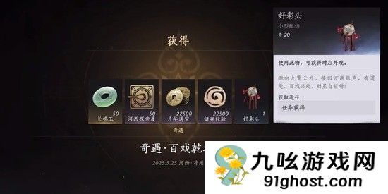 第三个名字叫“醒绿珠”,需要完成凉州侠迹“玉露为乡”才能获得,玩家首先要找到流霞印,根据线索登上夏依园的界碑。如果你找到一个上面有红光的酒坛,你可以触发“玉露为乡”,第四个是饰品的“好色头”,需要先完成“这个身体属于唐朝”的残章。可以先送到天水集,触发“百戏干坤”,完成后就可以拿到了。第五个名字叫“凋朱颜”,你要先完成河西镇守中的“白头城”,然后,在影踪志略的任务中,可以获得12个旅游点。