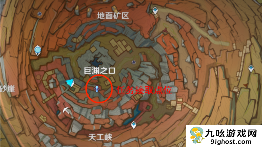 在地图层岩巨渊上层寻找一个叫阿望的NPC对话就可以接取对应的任务开始完成了