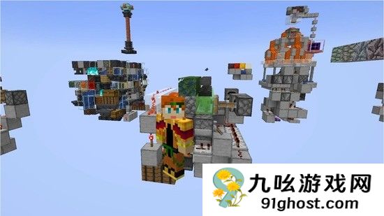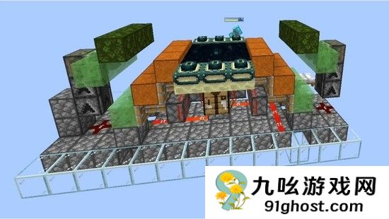在中继器上延伸两个方块,在第二个方块下放一个活塞,用红石连接。在前两个活塞上加入三个粘液块,顶部活塞的左右两侧加入活塞。我们把叶子放在第一排的红石上,然后启动拉杆。根据前面的方法,这个装置可以用于传输的其他三个位置。因为沙子在最后的地主世界里没有机器就不会工作,所以在地狱和地狱传输门附近做一个发射装置,一个方块装置就会一直启动,这样刷砂机就会一直工作。