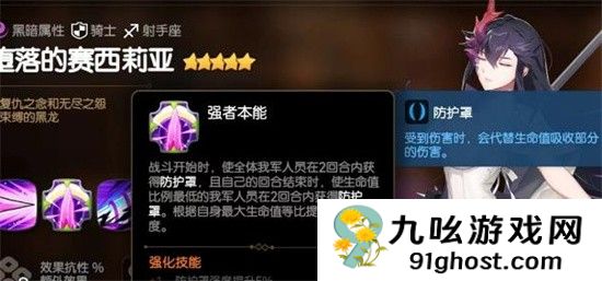 堕落的塞西利亚虽然是女性形象,但是在强度上丝毫不差,能够用自己手中复仇之矛挑衅对方,强制攻击自身来保护队友。在战斗开始时还能使我方所有人员获得护盾护盾,如果不会打破将持续两个回合,吸收大量伤害。并且在自己回合结束时,能额外使我方血量最低一名目标再次获得护盾,这样既能够保护全体又能突出重点,非常全面。