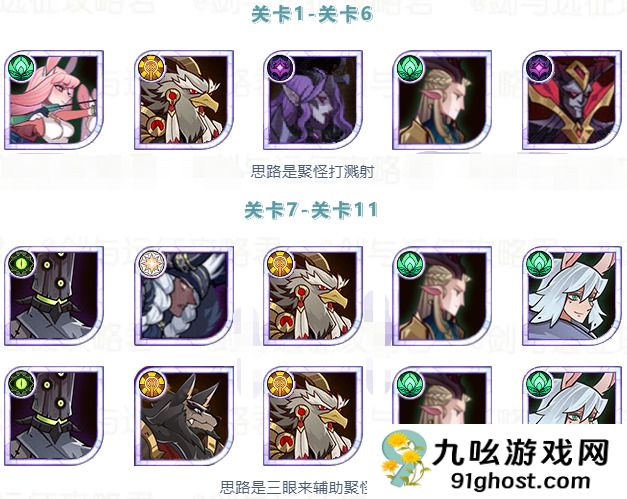 1、【隐秘村庄】各级阵容如图。副本的难点是溅射伤害的比例,主要看这个战场效果。简单的平民理解就是依靠绿箭和沙雕的怪效就可以造成足够的溅射伤害。