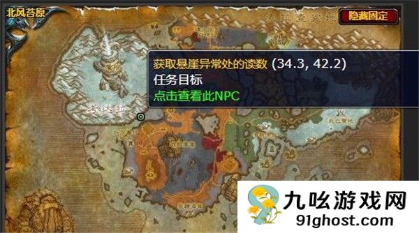 2、任务是要在悬崖异常处使用奥术测量器,来到(34.3,42.2)标点处使用奥术测量器即可。