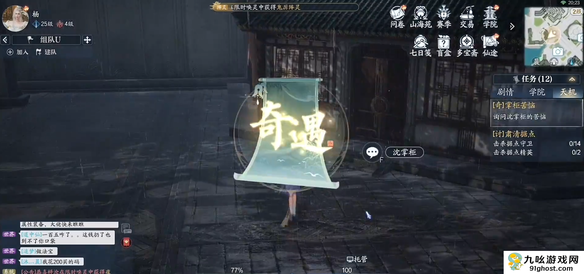 2、在坐标点激活奇遇并与NPC沈掌柜对话