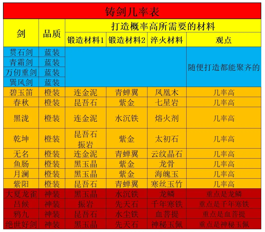 烟雨江湖铸剑惊云活动中需要打造各个不同的武器,其中武器分为蓝品、橙装、神装三种类型,蓝色品质的武器放入任意材料都可以打造获得,其他橙装和神装需要放入相应的材料才可打造完成。这里也为大家收集整理了相应的各个武器的打造配方,具体详情见下文内容!