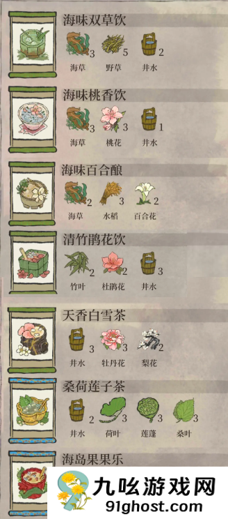 江南百景图海风饮饮配方制作材料大全一览