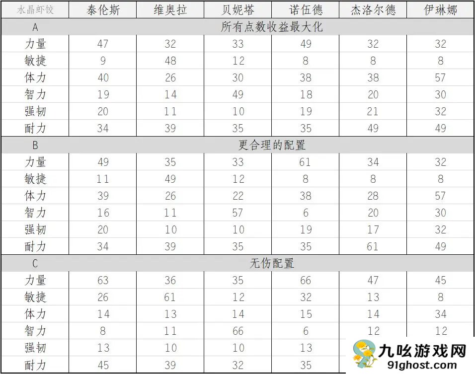 5、杰洛尔德:力量34、敏捷8、体力28、智力20、强韧17、耐力61