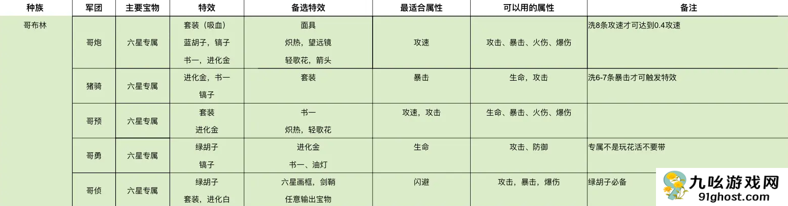 放置军团角色的种族分为哥布林、魔族、中立、人族、亡灵五个,每个种族都有各自专属的军团角色以及对应的宝物属性,下面为大家整理收集了详细的游戏中各个宝物特效以及属性的相关适配内容!