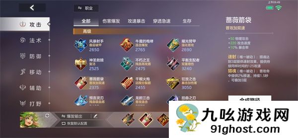 | 装备 | 效果 | 蔷薇箭袋提供大量加速效果,快速击杀草丛中的野怪暴击装补充伤害,搭配被动攻击加速,快速黏人打出普攻伤害防御神装大后期补肉,增加生存能力,避免被集火秒杀第五件装备提供攻击英雄加速机制,增强容错率和黏人能力