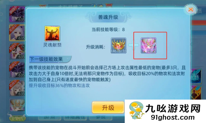 9、如果把天赋都合在龙上了那么升级技能就需要龙精魄,而用凤凰升级,只需要凤凰精魄