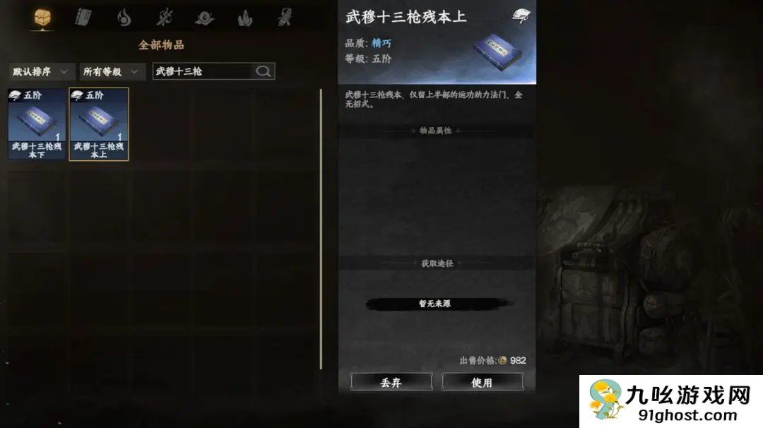 背包使用获得地级枪法武穆十三枪