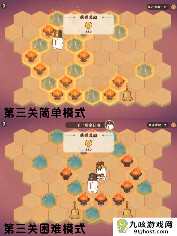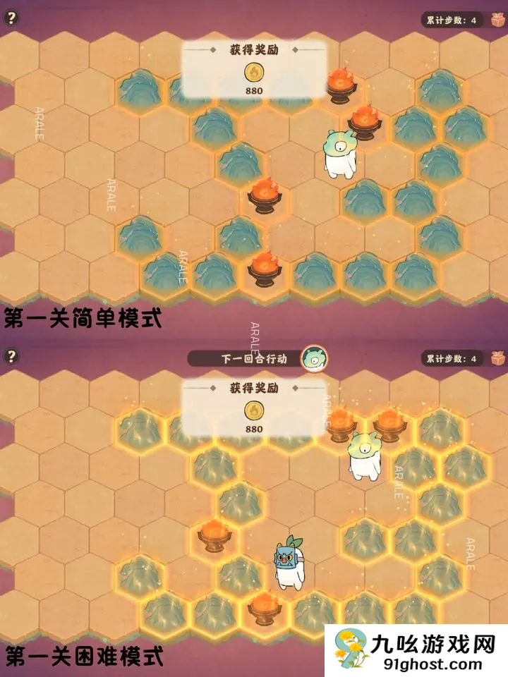 桃源深处有人家巫音和愿活动火困崇除小游戏总共有4个关卡,分为简单模式和困难模式,其中第一关简单模式和困难模式都需要四步;第二关简单模式和困难模式在要求内即可;第三关简单模式和困难模式在步数要求内即可。