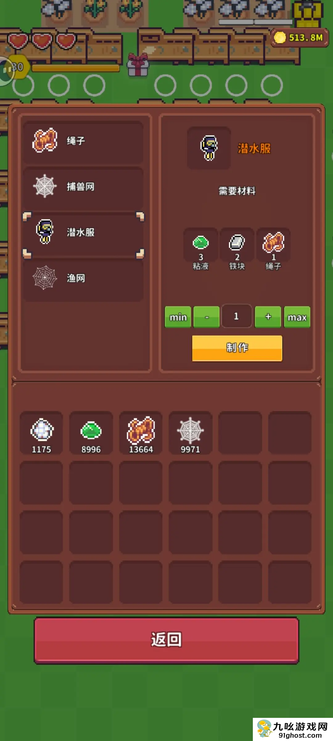 1、在工作台可以制作捕鱼网和潜水服