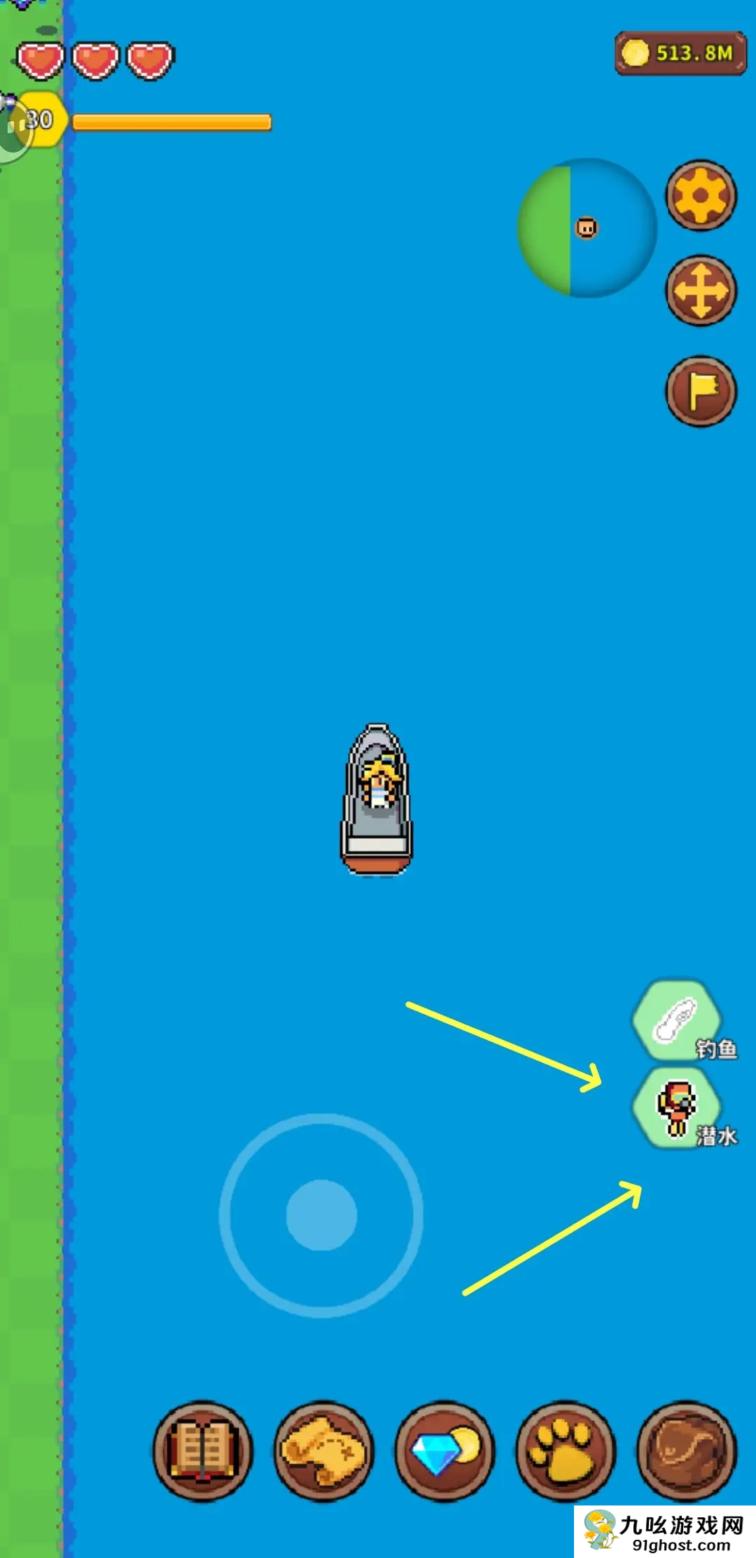2、买一个船,上船后离陆地远几格就可以潜水了