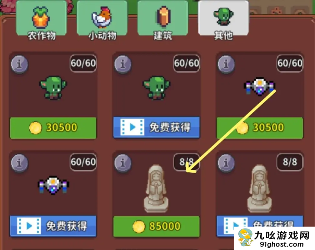 先买个工作台,原料是棉花和粘液,它们都属于隐藏物种,需要购买神像后解锁。粘液是得解锁史莱姆后养殖获得,棉花则是农作物种植获得