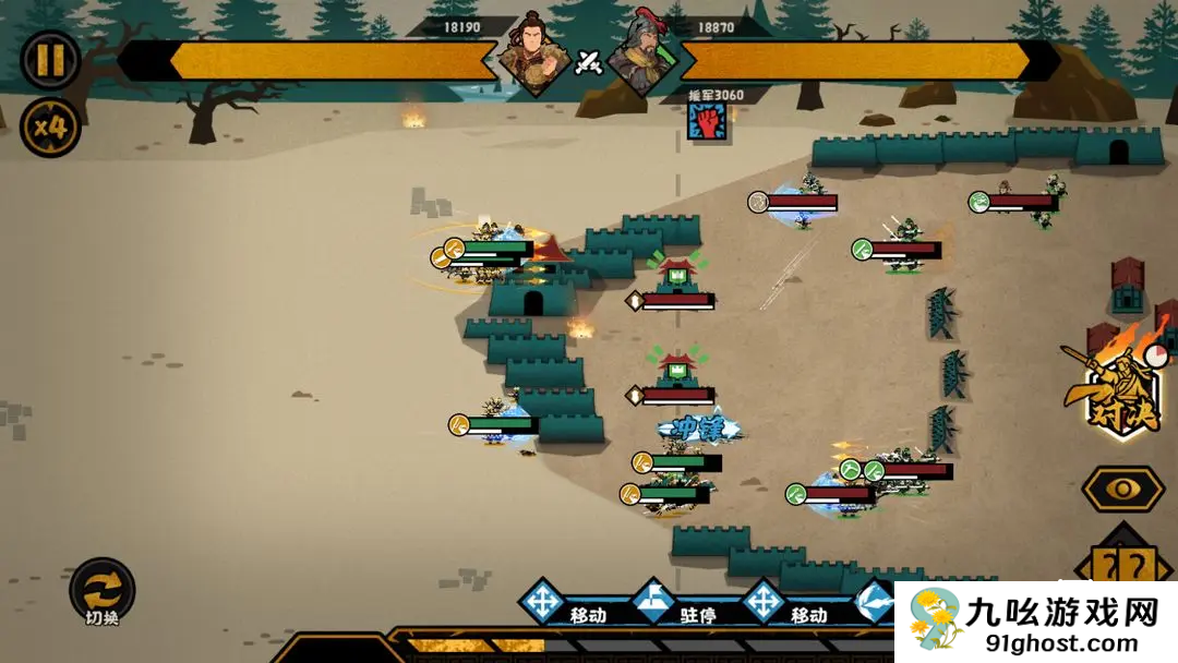 全新战斗机制解析本次剧本革新引入武将单挑战技,两军交战时随机触发对决邀请,限定战场仅出现两次挑战机会。单挑采用五局三胜制,成功方累积战功,败者将折损军心士气。操作模式融合音乐节奏玩法,当兵器标识进入判定区时,需精准触屏响应,类似端午龙舟竞渡的趣味操作。