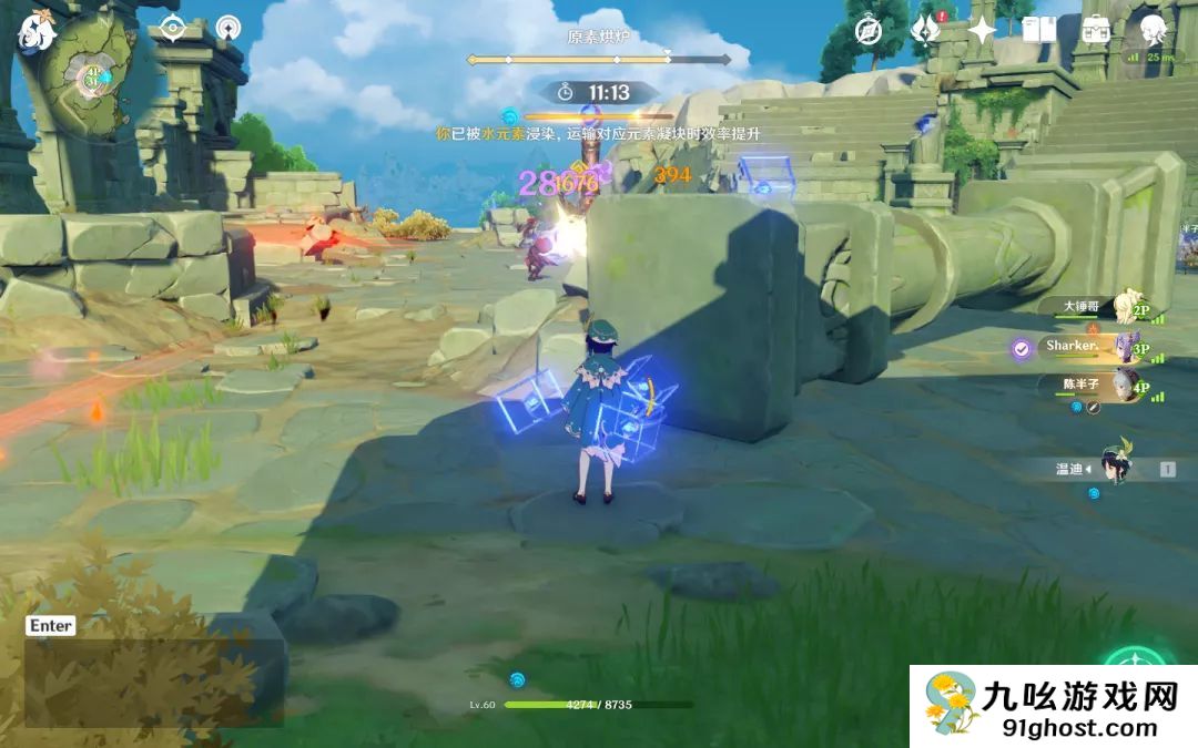 穿过屏障会看到一个解谜区域,这里需要调整几个机关的顺序。正对门的机关是起点,标记为1号,其他机关按门上图案的顺序依次调整。解谜成功后能触发净化仪式,击败出现的武士魂灵就能继续深入。过程中别忘了开元素视野,角落的绿草里藏着一本书的残页,这也是重要收集品。