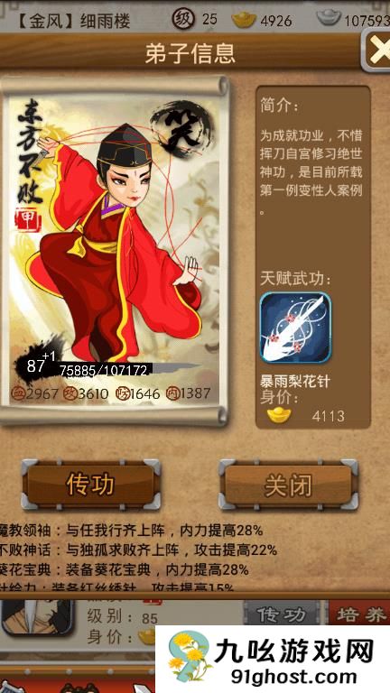 城主与张无忌作为核心弟子,其强度与培养方向一直是玩家讨论的焦点。城主作为防御型弟子,凭借高基础血量和攻防平衡的成长属性,在血战和论剑中表现稳定。其天赋技能天外飞仙具备封穴效果,能有效限制对手行动,尤其在后期资源集中培养后,暴击率提升可显著增强输出能力。张无忌则更偏向综合型,技能触发率高且自带减伤机制,适合平民玩家作为主C培养。六次觉醒后可通过传功回收资源,灵活性较高。两者定位不同,城主适合前排抗伤,无忌则更适合持续输出。