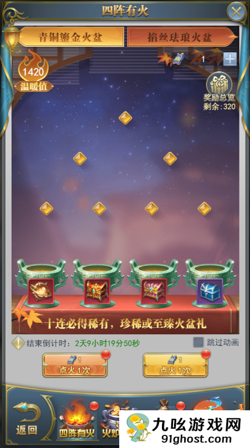 本次活动的神灵奖励在小型活动中性价比突出。平民玩家建议锁定180抽档位,中氪玩家推荐冲击320抽获取光之本源,而重氪大佬则可以直接挑战840次终极奖励!合理规划钻石消耗,让你在四阵有火活动中收益最大化。