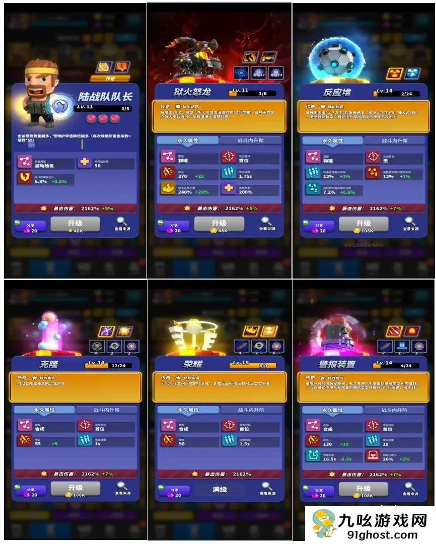 反应堆:辅助角色,大幅增强周边塔的伤害和攻速,效能突出。